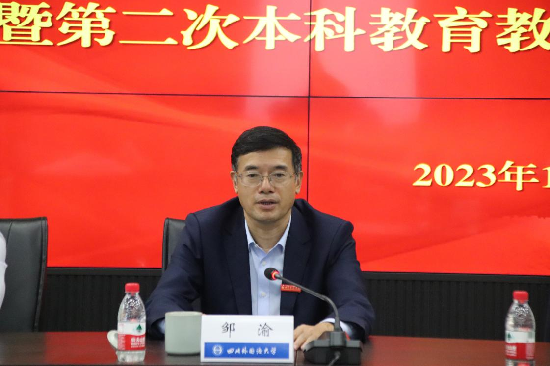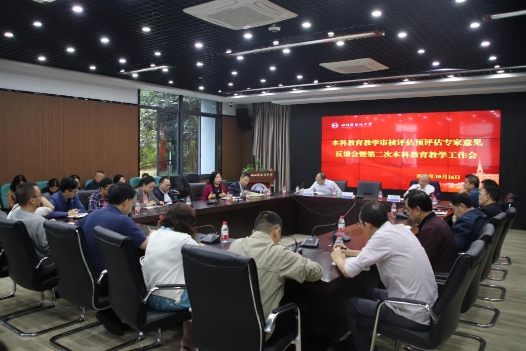 2023年10月16日,学校召开本科教育教学审核评估预评估专家意见反馈会暨本学期第二次本科教育教学工作。党委书记邹渝,副校长王仁强、严功军出席,各教学单位党总支书记、院长、副院长、教学秘书、教育规划与评估院、教务处相关人员参会。会议由副校长严功军主持。