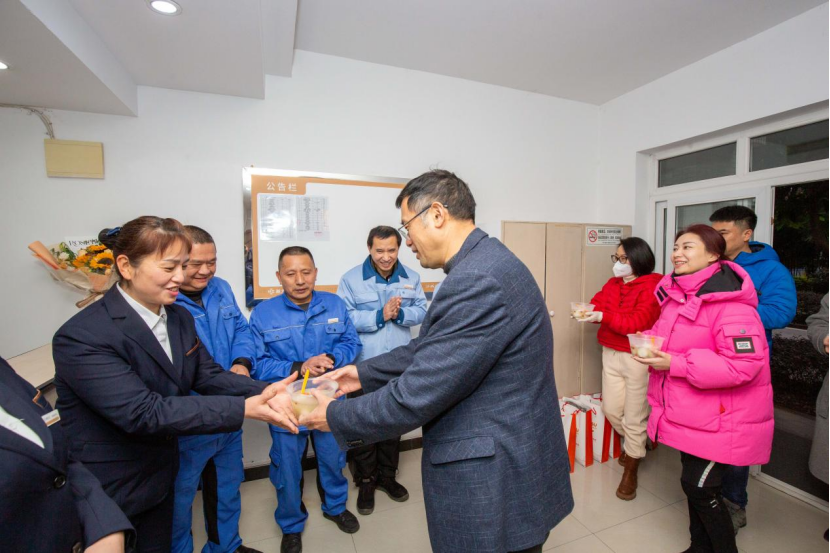 1月22日,大年初一早晨,党委书记邹渝走访慰问假期坚守工作岗位的一线干部职工,向他们送去生活关怀并致以新春的问候和祝福。