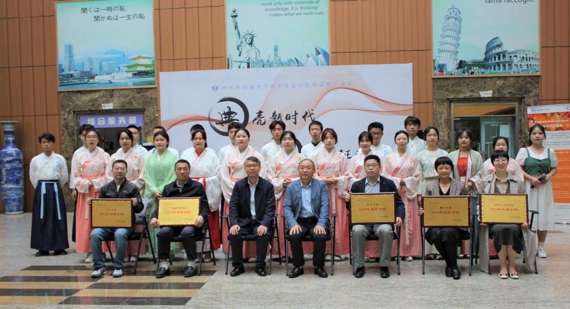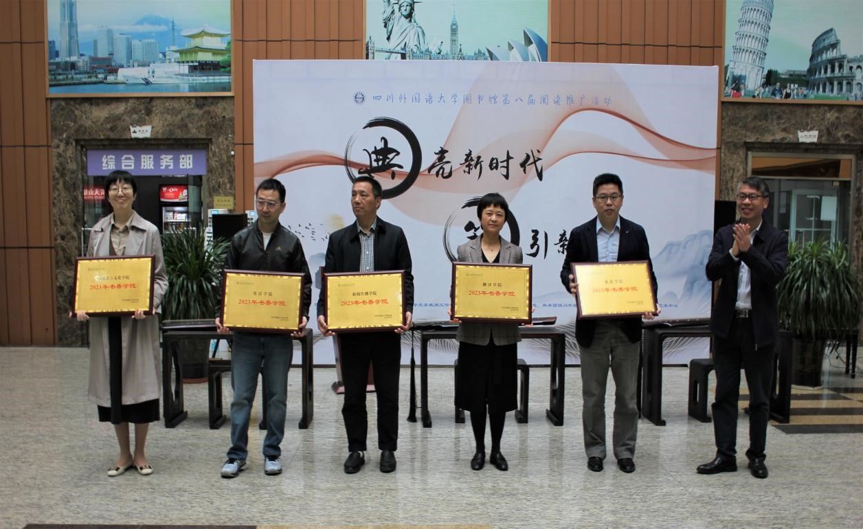 “树立榜样、促进阅读”,是图书馆举办“书香学院”评选活动的宗旨。开幕式现场揭晓了“2022年书香学院”评选结果,分别为中国语言文化学院、英语学院、新闻传播学院、翻译学院和德语学院。卢波教授为“2022年书香学院”颁奖。