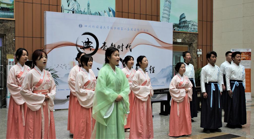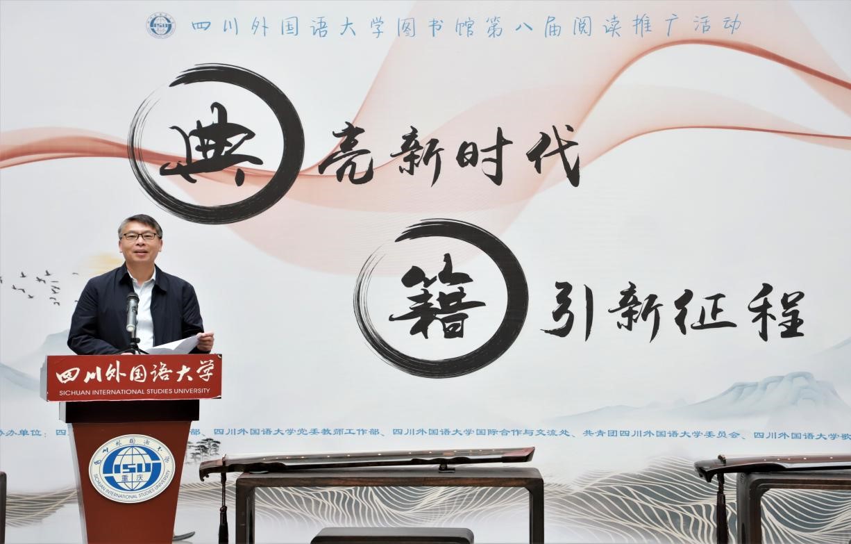 2023年4月4日上午,四川外国语大学第八届阅读推广活动开幕式在图书馆一楼大厅举行。本次活动的主题是“‘典’亮新时代,‘籍’引新征程”,由图书馆主办,党委宣传部、党委教师工作部、国际合作与交流处、共青团四川外国语大学委员会、歌乐艺术中心协办。四川外国语大学副校长卢波教授出席开幕式并讲话。