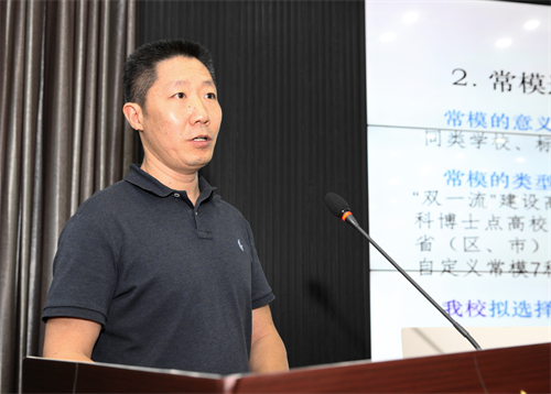 教育规划与评估院院长彭江首先从新一轮审核评估的要点、我校审核评估工作进展、后续审核评估工作任务安排和审核评估工作注意事项四方面作工作汇报。他认为,此次审核评估重在立德树人根本标准的考察,并通过“线上+入校”两种形式完成对学校本科教育教学工作的全方位诊断;目前学校已经完成评估选型论证、专门机构设立、工作路线、组织培训宣传、学习借鉴评估经验、推动自评自建等各项基础工作;下一步要在思想统一、行动执行力、自评自建成效凸显和迎评氛围营造等问题上加大工作力度,以高质量完成审核评估工作。