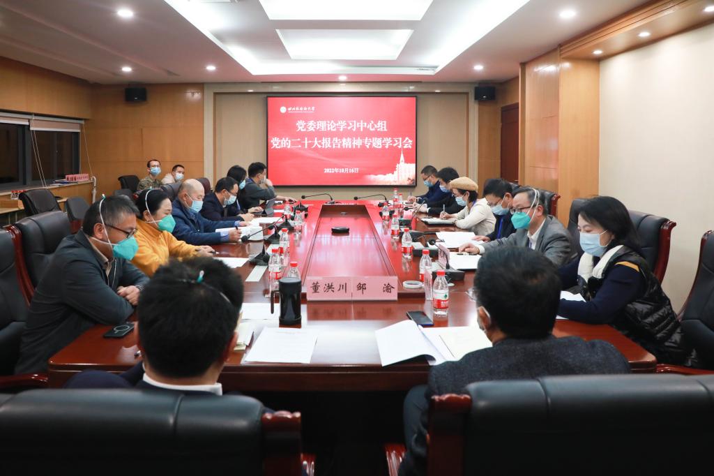 10月16日晚,校党委理论学习中心组举行集体学习,在上午认真收看党的二十大开幕会直播,仔细聆听党的二十大报告的基础上,第一时间专题集中学习研讨习近平总书记代表十九届中央委员会向大会所作的报告,树立了充分发挥中心组学习引领示范带动作用的鲜明导向。全体校领导参加。