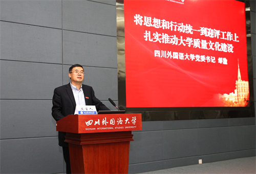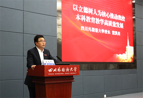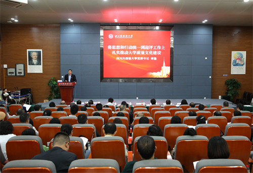 王仁强副校长作了“《四川外国语大学本科教育教学审核评估工作方案》解读”的专题报告。他结合学校实际,深入阐释了教育部普通高等学校本科教育教学审核评估工作的启动背景、体系特征,并详细解读了我校本科教育教学审核评估工作方案。他指出,本科教育教学审核评估是落实党中央教育评价改革要求、抓实人才培养质量“最后一公里”的内在需求,也是学校查摆问题、发现不足的重要契机,有利于学校持续推进本科教育教学改革、优化资源配置、不断完善质量保障机制、推动内涵式高质量发展。他提出了强化落实新一轮审核评估工作的四项要求:一是完整、准确、全面地领会新一轮审核评估新内涵、新要求;二是找准自身在本科人才培养及质量保障体系中的坐标,进一步强化本科人才培养质量保障体系建设;三是落实落细审核评估任务,增强本科教育教学质量与特色,协同开创本科教育教学新格局;四是持续推进信息化改革,强化教学管理与服务过程性、结果性材料的电子化管理。