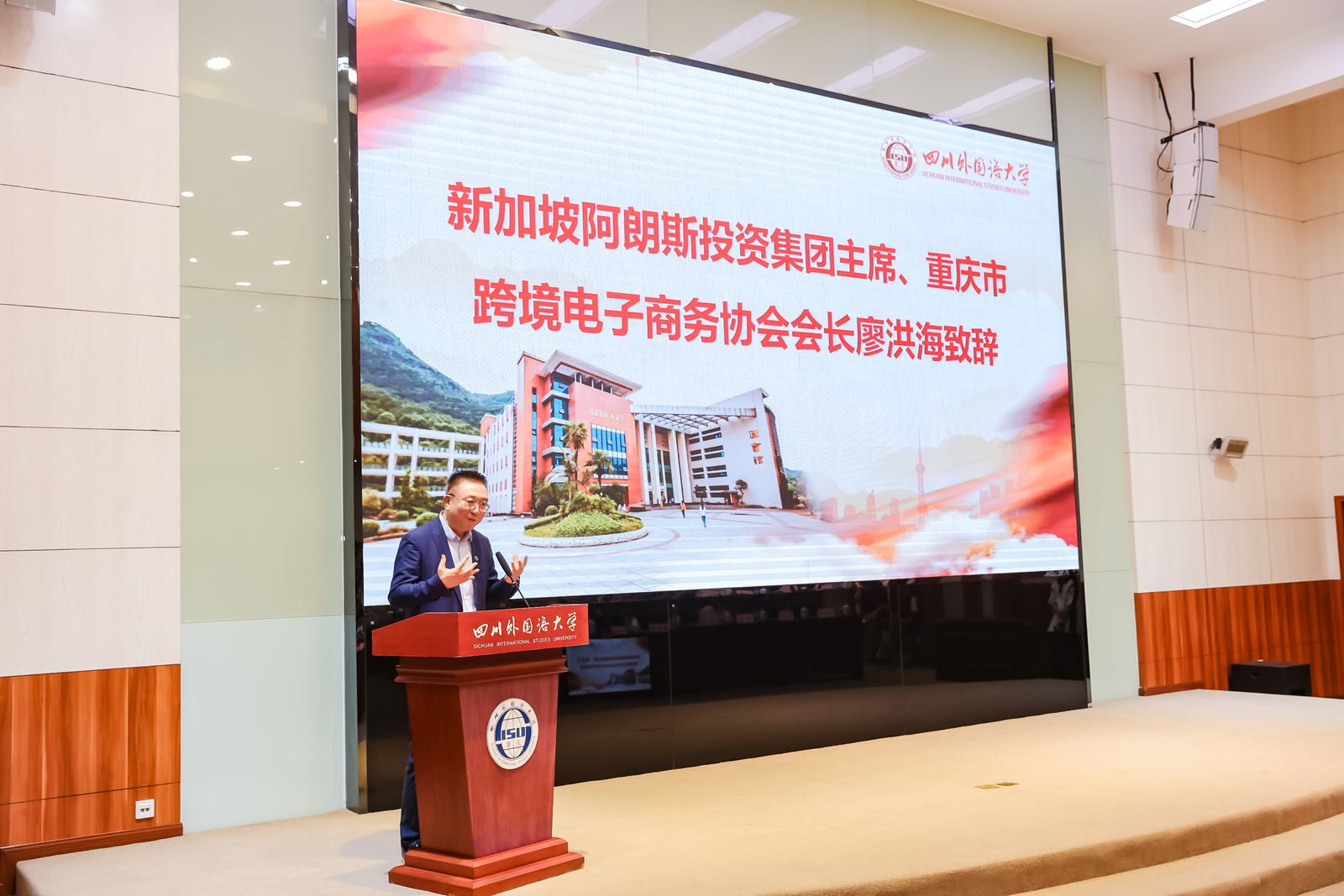 新加坡阿朗斯投资集团主席、中新(重庆)跨境电商产业园董事长、重庆市跨境电子商务协会会长、国际工商管理学院校友会名誉会长廖洪海先生在发言中指出,川外的多语种优势与跨境电商的紧密结合,将推动重庆跨境电商领域的产教融合更具聚合度。他希望通过多语种跨境电商产业学院的打造,让企业的人才需求与大学生的职业发展方向紧密结合,打造跨境电商人才培养与孵化基地,助力创业学子在跨境电商道路上迈出坚实的一步。