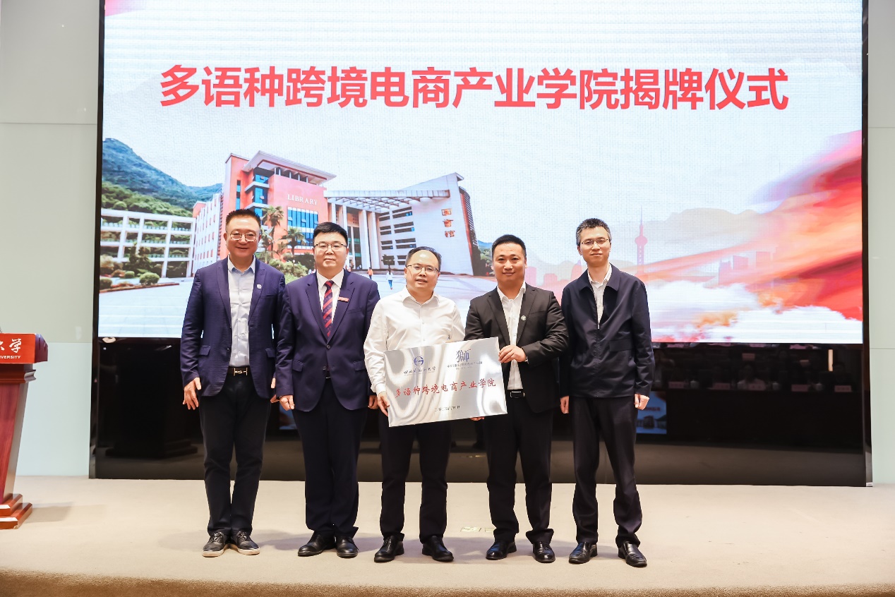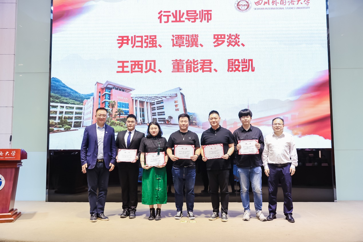 随后,董洪川校长、严功军副校长以及重庆市商务委员会李国田处长、新加坡阿朗斯投资集团廖洪海主席、中新(重庆)跨境电商产业园王利刚总经理共同为“多语种跨境电商产业学院”揭牌,并为产业学院的行业导师颁发聘书。