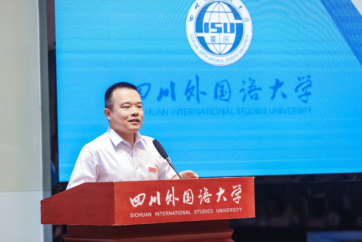 活动第一阶段举行了产业学院揭牌仪式,由国际工商管理学院党总支副书记王婷主持。董洪川校长在致辞中指出,国际工商管理学院积极响应重庆市跨境电商高质量发展等重大战略需求,联合中新(重庆)跨境电商产业园共建多语种跨境电商产业学院,将在特色学科群建设、社会服务提供、创新创业孵化等方面探索产业学院建设新模式,推动高等教育与跨境电商产业集群联动发展,构建“政府-高校-园区-企业”深度融合的协同育人机制,培养一批“政校企”多方急需的多语种跨境电商人才。他希望与会嘉宾畅所欲言,为产业学院发展以及重庆市跨境电商人才培养出谋划策,为推动重庆市更高水平对外开放贡献力量。