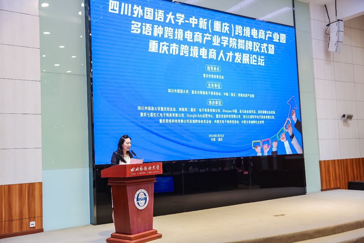 重庆市商务委员会外贸管理处处长李国田在致辞中介绍了近年来重庆市从主体培育、园区建设等方面推进跨境电商发展的相关举措。他指出,数据显示全国对跨境电商的人才需求量大,跨境电商未来发展前景广阔。成立多语种跨境电商产业学院是抢占跨境电商人才培养高地的重要举措,要整合重庆的产业带发展优势、四川外国语大学的多语种学科优势、中新(重庆)跨境电商产业园的平台载体优势,一起推动跨境电商产业发展、加强跨境电商人才培养。