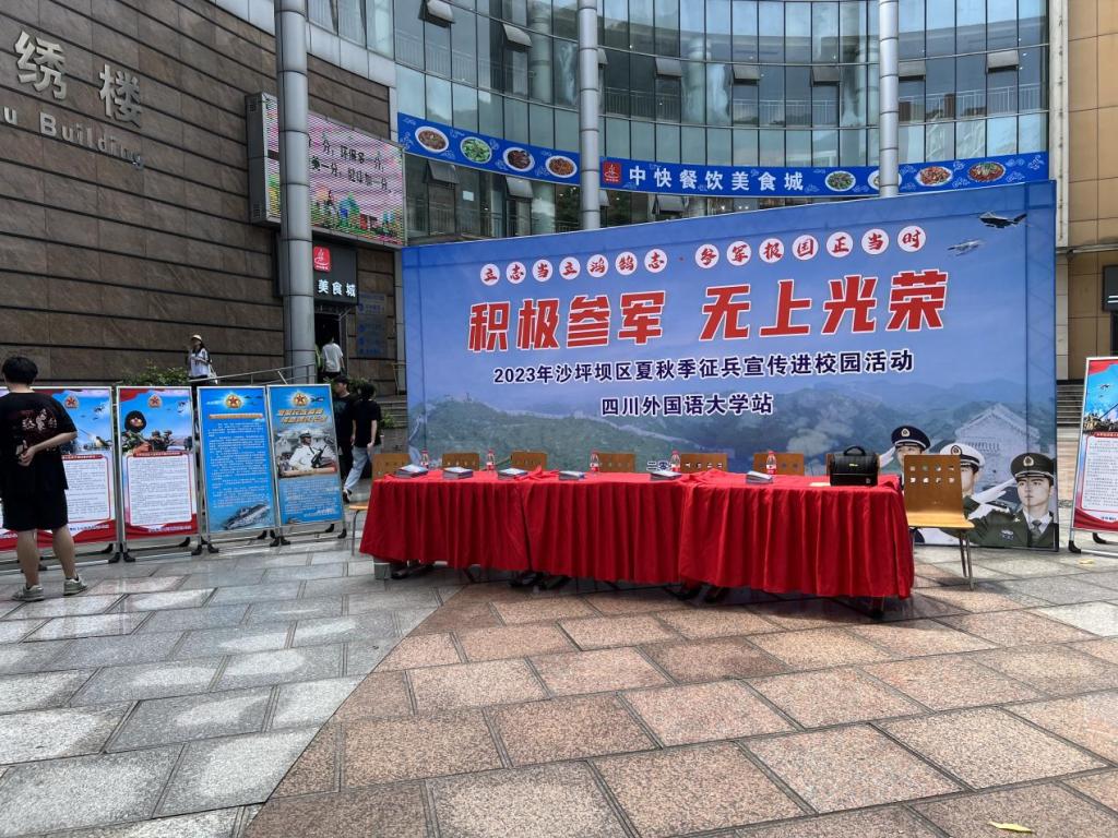 为进一步宣传国家征兵政策,鼓励青年大学生携笔从戎,投身军营,6月6日上午,我校与重庆市沙坪坝区人民武装部共同举办了“征兵宣传进校园”活动。校武装部部长陈派、沙区武装部政治工作科卢崇政、况杰及沙区武装部保障科赵本东参加此次活动。征兵宣传现场气氛火热,引来了大量学生驻足咨询,活动取得了较好成效。