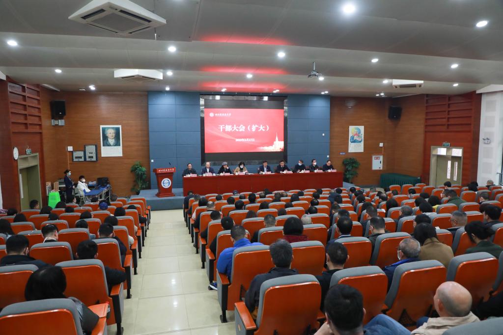 校长董洪川解读了学校2023年党政工作要点。他指出,学校将2023年设定为学科专业建设年,是贯彻落实第二次党代会精神开局起步的关键之年,学校将以习近平新时代中国特色社会主义思想为指导,以学习宣传贯彻党的二十大精神、市第六次党代会和市委六届二次全会精神为主线,深入贯彻落实学校第二次党代会精神,秉持“坚持党建引领、提升内涵建设、加快外延拓展、推进治理现代化”的工作思路,以重点推进学科专业建设、学位授权点增列、新一轮本科教育教学审核评估、新文科建设高校和国际化特色高校建设、新校区建设为重要抓手,做好以下几方面工作:一是坚持党建引领,深入学习宣传贯彻党的二十大精神、市第六次党代会和市委六届二次全会精神,做好二届党委巡察工作、思想政治工作、干部工作、统战工作、党管人才工作。二是提升内涵建设,加强学科建设、专业建设,做好本科教育教学审核评估工作、新文科建设高校建设、国际化特色高校建设、科学研究工作。三是加快外延拓展,推进新校区建设,校地合作工作。四是推进现代化治理,加强内控建设、优化内部治理、增进民生福祉。他要求,新学期开学之际,干部要认真思考专业建设规划和项目落实制度,教职工要重整旗鼓,严守工作纪律,以崭新的面貌做好新学期工作,提升学校核心竞争力。