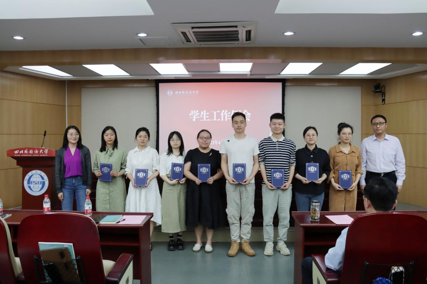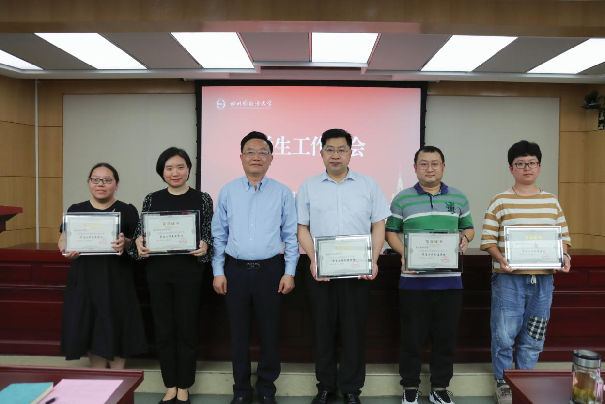 崔光军宣读《四川外国语大学关于表彰2022年学生工作先进集体和十佳辅导员、优秀辅导员的决定》。李彦和职能部门负责人为获奖集体和个人颁奖。