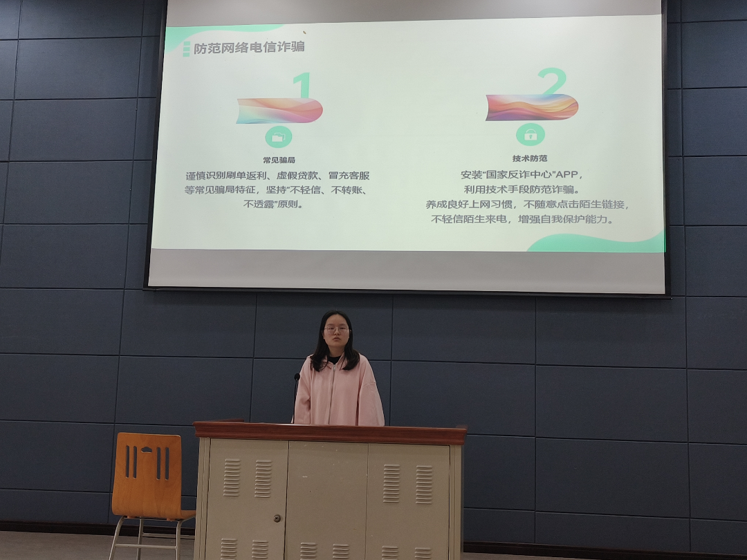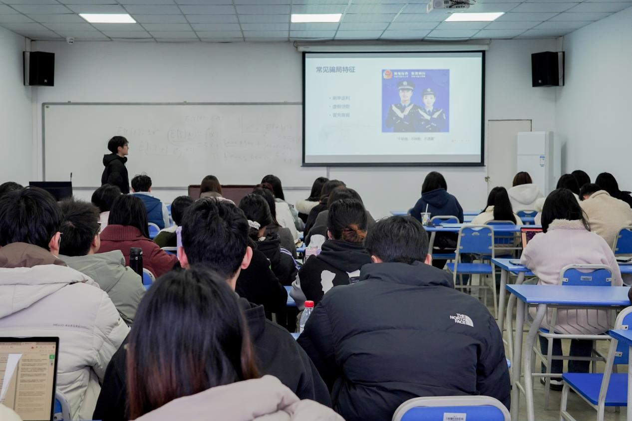 案例再现,增强学生防范意识。英语学院、国际金融与贸易学院等开展“反电信诈骗”专项行动。学院通过主题班会、案例分析、反诈宣传片展播等形式,揭露刷单返利、虚假贷款等常见骗局套路,强化“不轻信、不转账、不透露”原则,教导大家面对诈骗要做到“三不”原则,即不轻信“守好认知防线”、不转账“握紧资金阀门”、不透露“筑牢信息壁垒”。同时,学院组织学生安装“国家反诈中心”APP,以“技防+人防”双管齐下,构建校园反诈安全网。
