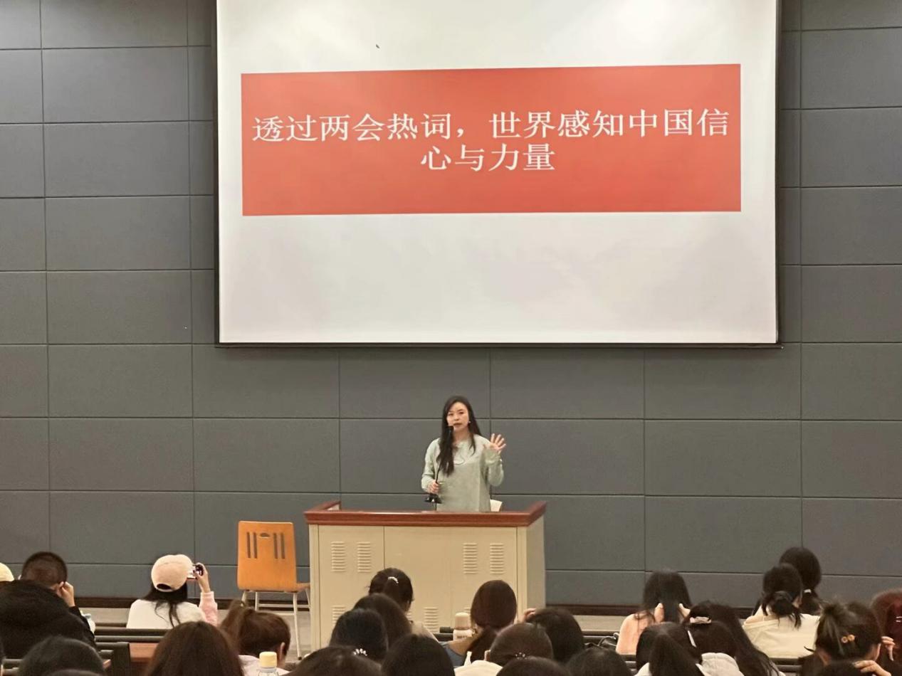 凝心聚力,深入学习两会精神。商务英语学院各班通过专题讲座、线上“青春‘声’动 说两会”竞赛和户外走访学习等形式,深入学习领会今年全国两会精神,帮助学生锚定新目标、理解新举措,积极投身到实现“十四五”规划目标任务的伟大实践中。“外贸仍然是未来俄语人才需求较大的领域,同时,八大新兴产业和九大未来产业下的新一代信息技术、新能源、新能源汽车和绿色环保等是俄语学子未来可优先选择的行业。”俄语学院开展“学习2025政府工作报告与两会热词解读”主题教育学习活动,辅导员结合专业和时代特点,针对性地开展两会精神学习宣讲。同学们纷纷表示,要结合自身,主动融入国家发展大局,在科技创新、民生保障、绿色转型等重点领域贡献智慧与力量。