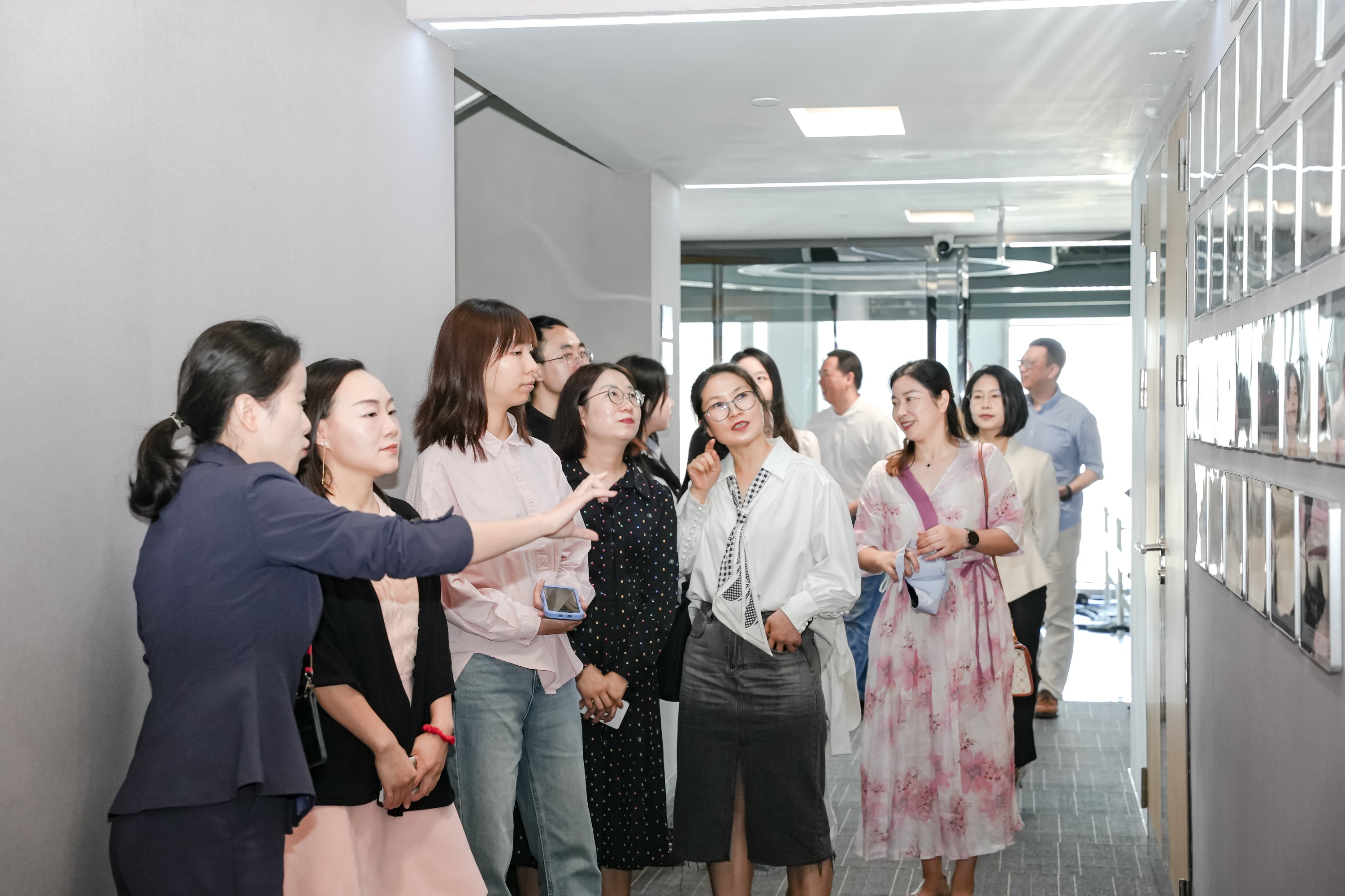 活动开始前,川外国际法学与社会学院教职工一行先后参观了智慧盈科大数据平台、“以案说法”直播间、党建长廊、模拟法庭等特色办公区域,深入了解了盈科重庆在“党建+公益”发展道路上的积极探索,以及在数智化、专业化、品牌化等方面的发展成效。