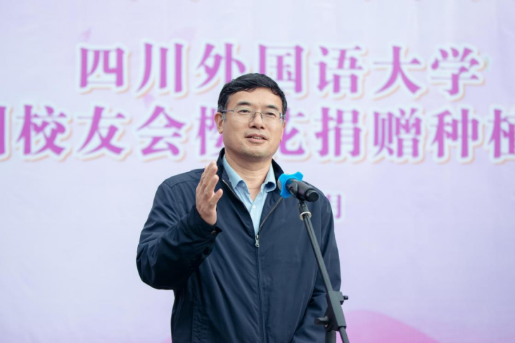 廖洪海校友代表重庆校友会发言时表示,深圳校友会对母校的深情厚谊让校友们感动,樱花是春天的象征,美丽多灿烂、雅致异凡俗,将樱花种植于川外,是为了鼓励广大川外学子们不忘初心,不负韶华,勇毅前行,开创未来。他号召广大校友向深圳校友会学习,共创母校美好未来。