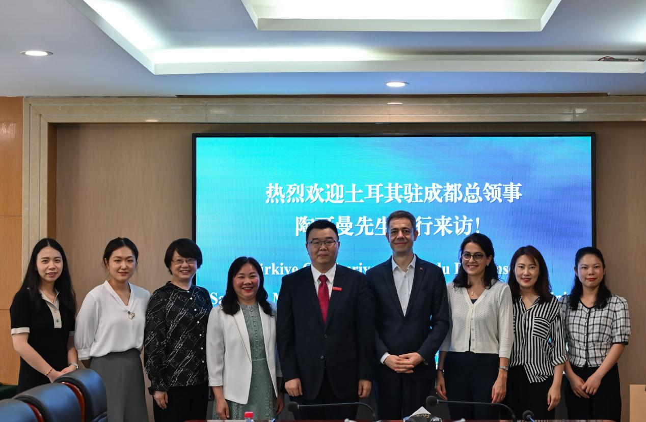 5月26日下午,土耳其驻成都总领事陶可曼(M. Mert Tokman)、总领事夫人欧紫兰(Ozlem Tokman)和总领事助理李瑞琦一行到访我校。我校校长董洪川与来宾会见,国际合作与交流处、东方语言文化学院的相关负责人共同参与。