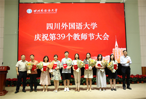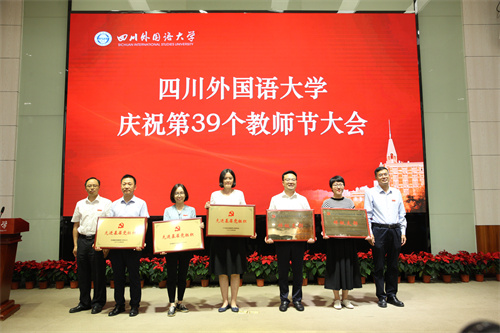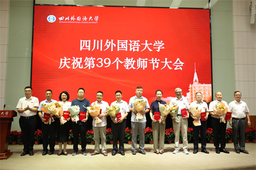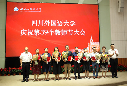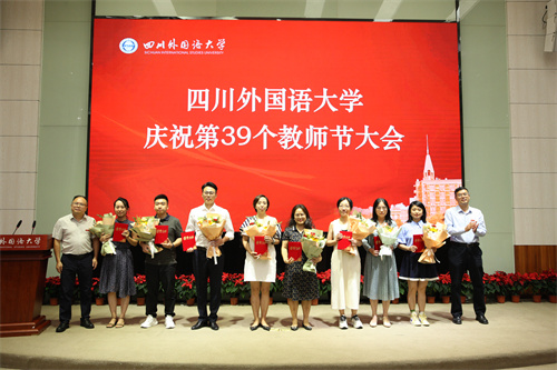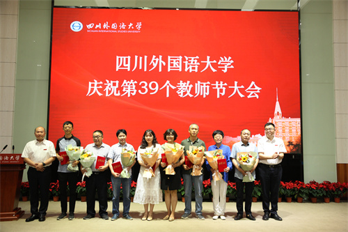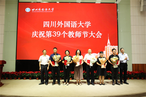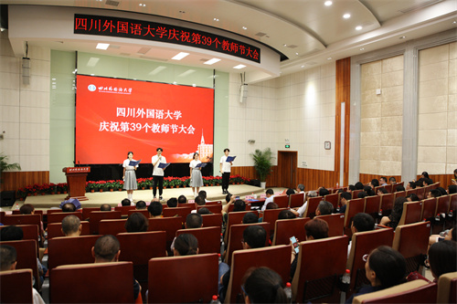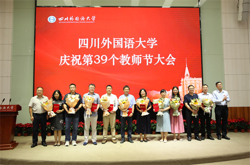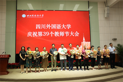 9月8日下午,四川外国语大学庆祝第39个教师节大会在宏文楼国际报告厅举行。全体校领导、中层干部代表、2022学年-2023学年市级以上荣誉获得者代表、研究生教育优秀导师、优秀外教等教职工和学生代表参加会议。大会由副校长郑白玲主持。