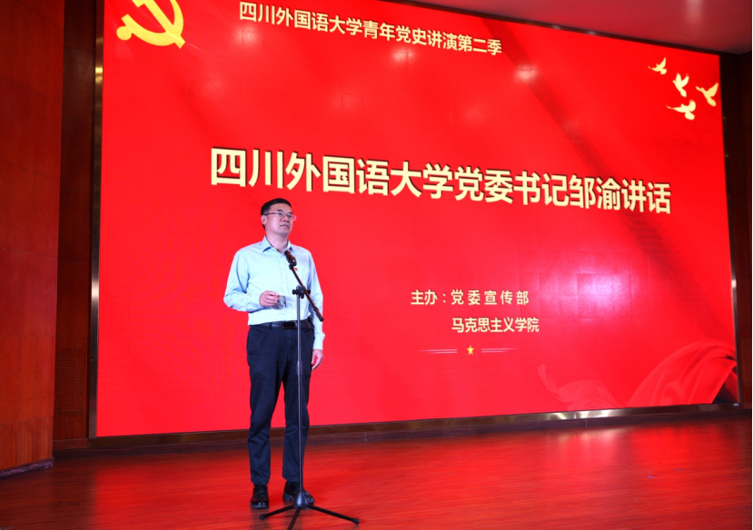 为喜迎党的二十大胜利召开,在“七一”建党节到来之际,6月23日下午四川外国语大学青年党史故事讲演团举行了 “青春献礼二十大,强国有我新征程”党史故事讲演活动。党委书记邹渝、党委常委、副校长卢波出席,各部门、院系党总支书记、副书记、基层党支部书记及马克思主义学院师生约260余人参加活动。活动由党委宣传部部长古晶主持。
