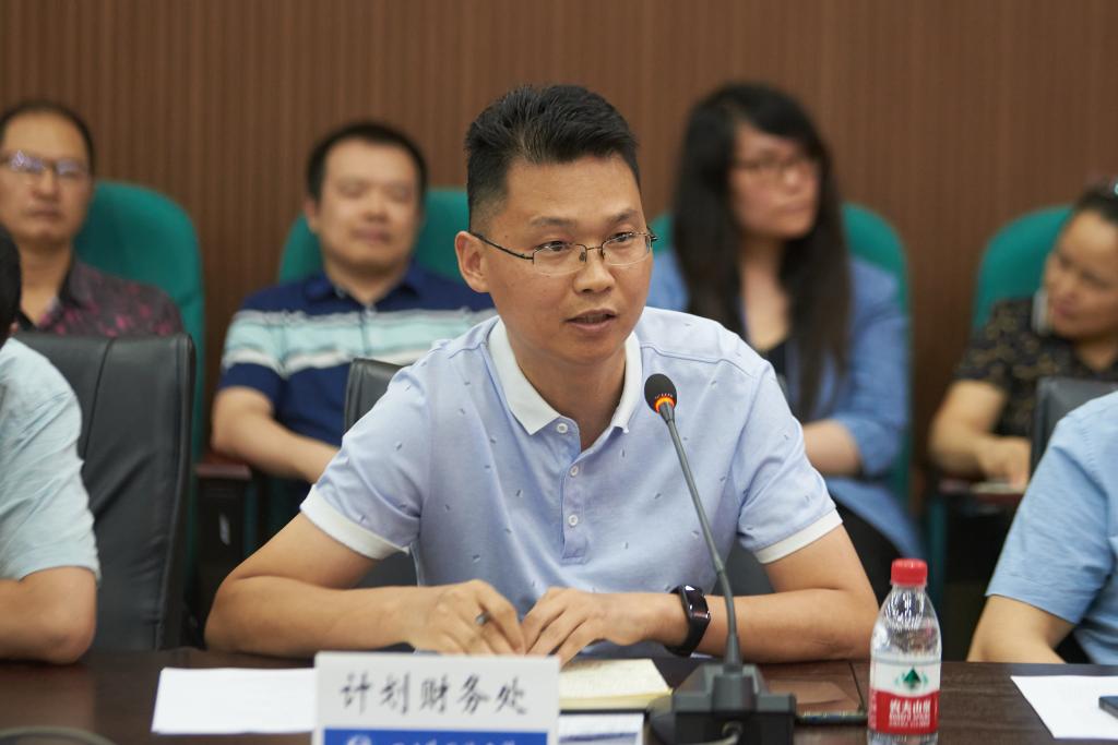 会议交流环节,财务处副处长连军就经费预算实施进度、招投标采购等工作做了汇报。
