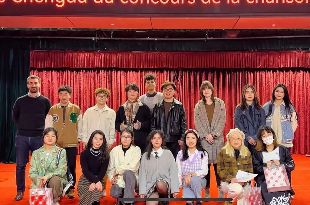 法语歌曲大赛是2023年法语活动月的重要组成部分之一。成都赛区半决赛由法国驻成都总领馆主办,于3月19日在成都法语联盟电子科技大学学生文化活动中心成功举行。比赛从十四位独具风格的参赛选手中产生了前三强。代表我校参赛的是法语学院2019级的秦子淇同学,22级刘宇航和21级王玥铃、杨敬雅同学。