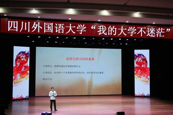 “再大的梦想,一步步也能实现,再小的目标,不迈开双脚也无法到达,我们不顾风雨,炽热的迎着扑面而来的生活。”……重庆邮电大学心理辅导中心教师、GCDF全球职业规划师黄彦萍的点评发言让礼堂内响起了热烈的掌声。为了贯彻落实全国、全市高校思想政治工作会议精神,进一步加强大学生学业指导,引导我校学生做好学业生涯规划,4月13日、19日下午,由我校学生工作部(处)、教务处、招生就业处主办,教育学院承办的的四川外国语大学“我的青春不迷茫”分享会第一场、第二场分期在东区大礼堂举行。学生工作部(处)处长古晶、教育学院党总支副书记向蓉以及部分院系辅导员出席了分享会。我校六位朋辈导师熊鹰、李琰、王思懿、曲虹宇、宋春晓、李玉凤与2015级、2016级本科学生共忆校园生活,分享奋斗历程。
