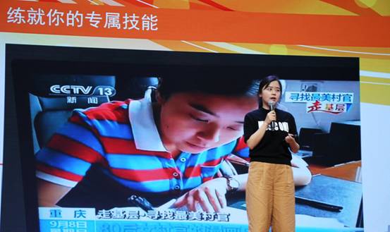 作为央视评选的“最美村官”,国际商学院2006级毕业生熊鹰首先上台,她语言风趣幽默并通过一张张图片为在场的老师和同学们分享了自己在基层工作的经历与心得,她还分享了自己认为的大学生涯中需要做的三件事:第一,要热忱地投入到社团活动中,为日后的工作积累经验;第二,要练就属于自己的专属技能,拥有一技之长,作为自己的闪光点;第三,培养良好的三观,树立正确的人生价值观。