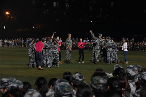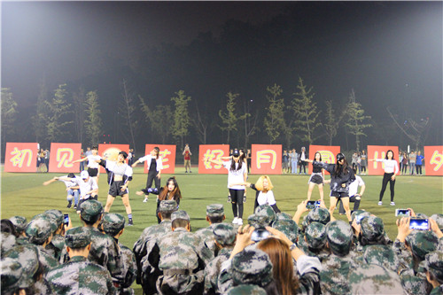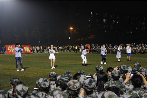 金秋送爽,月桂飘香,9月15日中秋节晚8时,“初见花好月圆川外情”2016级新生军训慰问演出于校西区操场隆重举行。本次演出是为新生和教官们准备的盛宴,本次活动由校非物质文化遗产推广基地主办,校学生会以及校社联承办。副校长郑白玲,军训团副团长陈嘉成,军训团参谋姚明,各职能部门的老师,军训团全体教官及2016级新生到场观看。晚会由校非遗基地大学生艺术团成员王辉、石雅雯主持。