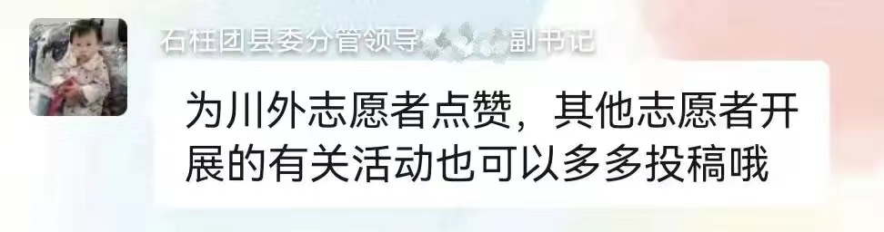 四川外国语大学项目办将以此为契机,动员号召更多青年以志愿者为榜样,到基层和人民中去建功立业,让青春之花绽放在祖国最需要的地方,在实现中国梦的伟大实践中书写别样精彩的人生。