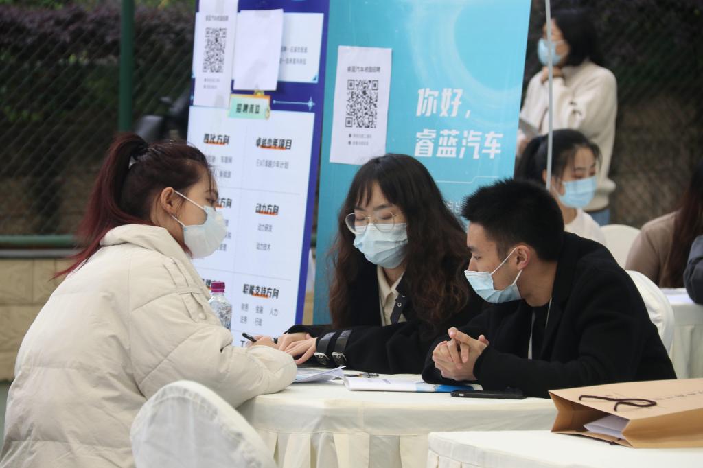 4月17日上午,学校在西区风雨操场举办“‘职’争朝夕不负韶华”2022届毕业生春季线下双选会。
