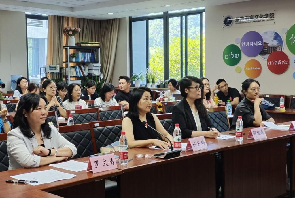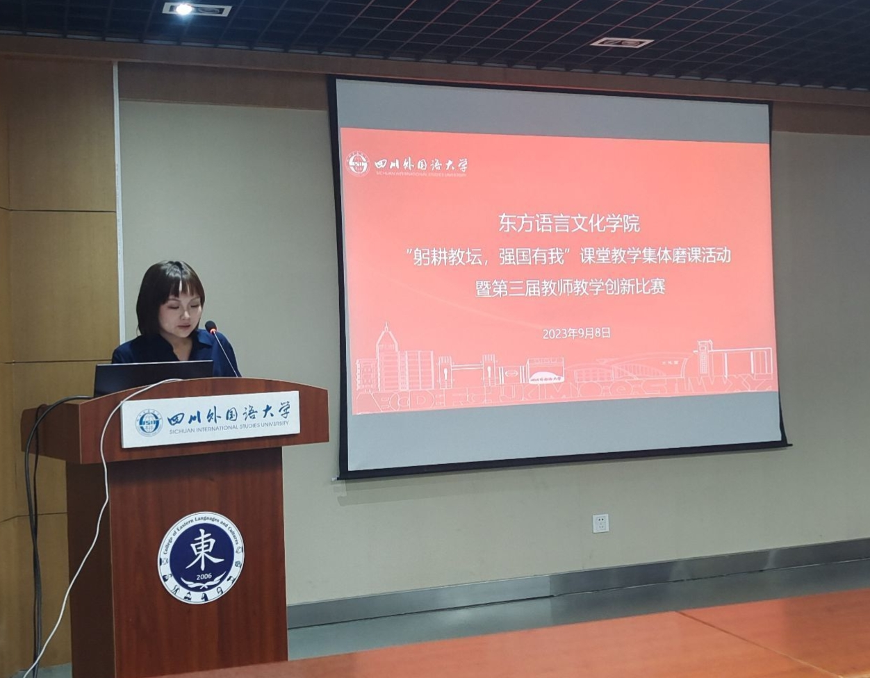 为提升专业建设水平、提高课堂教学质量、增强教师教学能力,9月8日下午,东方语言文化学院举行了“躬耕教坛,强国有我”课堂教学集体磨课活动暨学院第三届教师教学创新比赛。马来语专业纳嘉怡老师、缅甸语专业张惠美老师、朝鲜语专业王倩倩老师、越南语专业黄秋莲老师、泰语专业蒙昭晓老师、土耳其语专业邢怡婷老师、希伯来语专业鲜非霏老师、印地语专业赵芳琳老师、阿拉伯语专业李仁龙老师代表各自专业参赛。罗文青、邵楠希、吴昊三位教授出任评委。祝朝伟副校长、刘玉梅处长出席并讲话。活动由东方语言文化学院党总支副书记陈睿主持。