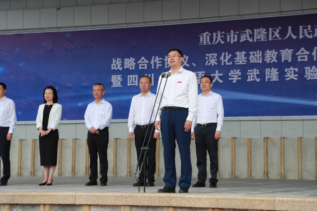 何庆在致辞中指出,四川外国语大学是国家最早设立的四所外语专业高等院校之一,是一所特色鲜明高水平应用研究型外国语大学。武隆是同时拥有“世界自然遗产地”“国家全域旅游示范区”“国家级旅游度假区”“国家5A级旅游景区”四块金字招牌的地区之一,合作协议的签署,将大力推动高等院校与地方合作共建、协同创新,推进武隆基础教育高质量发展,提升全区教育教学质量,形成学校与区域经济社会联动发展格局,积极服务武隆经济社会发展。
