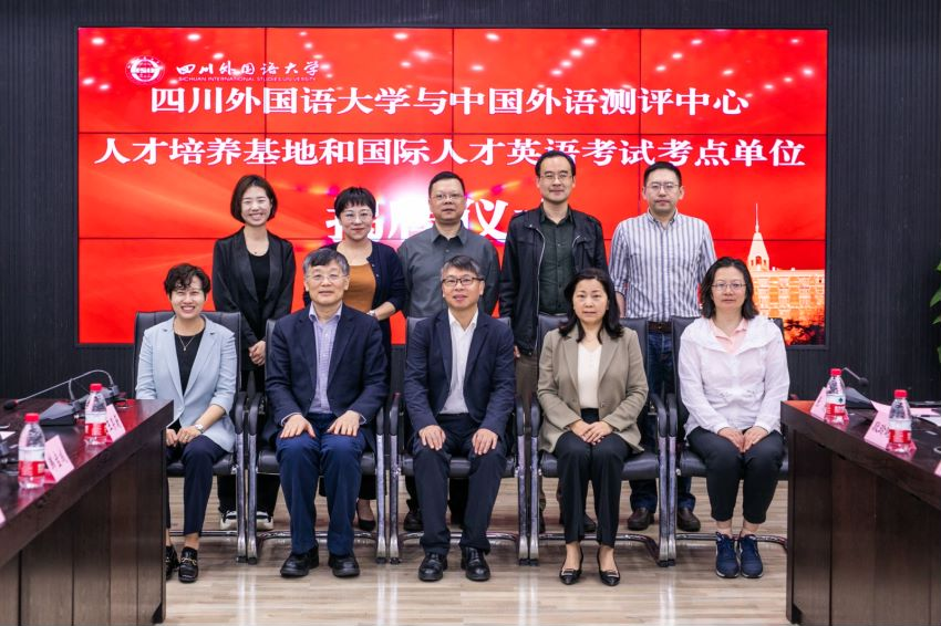 最后,四川外国语大学与外语教学与研究出版社签署了合作协议。四川外国语大学教务处处长刘玉梅和外研教育测评中心总经理作为双方代表,进行了现场签约并为中国外语测评中心人才培养基地、国际人才英语考试考点单位揭牌。