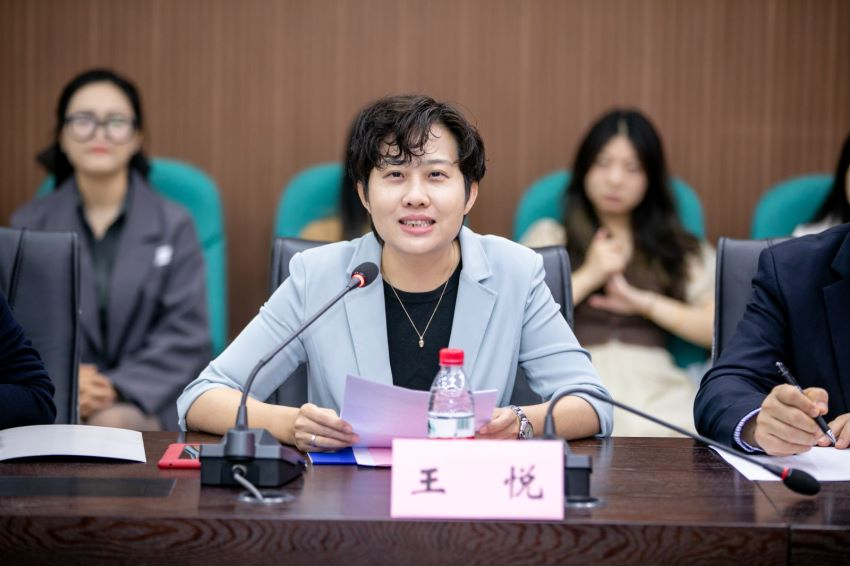 王悦总经理表示非常荣幸来我校共同探讨国际化人才培养理念、教学改革、测评驱动以及高校育人的路径,她介绍了国才考试理念,对学生能力培养的目标及与全国各大高校和著名企业合作的情况,并强调四川外国语大学一直是外研社重视合作的高校,希望以后可以在教材研发、测评促教、数字化外语教学等多个领域开展深入的合作。