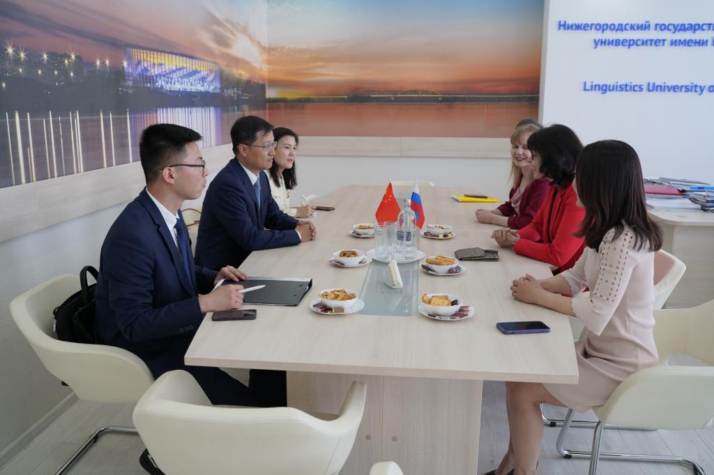 当地时间2023年6月2日上午,中国驻俄罗斯喀山总领事向波一行访问了下诺夫哥罗德国立语言大学(以下简称“下语大”)孔子学院。下语大分管外事副校长安娜·米哈伊诺娃代表学校接见了总领事一行,下语大孔院中方院长敬菁华、俄方院长安娜·普罗沃托罗娃参与会见。双方就下语大汉语教学及孔子学院发展等事宜进行了洽谈。