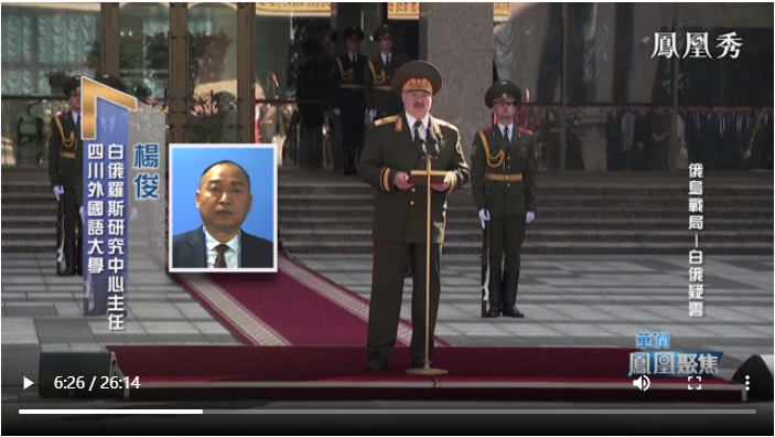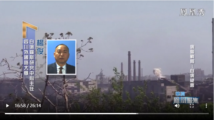 2022年9月13日22:00时,四川外国语大学白俄罗斯研究中心主任杨俊教授接受了凤凰卫视《凤凰聚焦》节目的线上采访,围绕“俄乌战局–白俄疑云”这一主题发表了自己的观点。