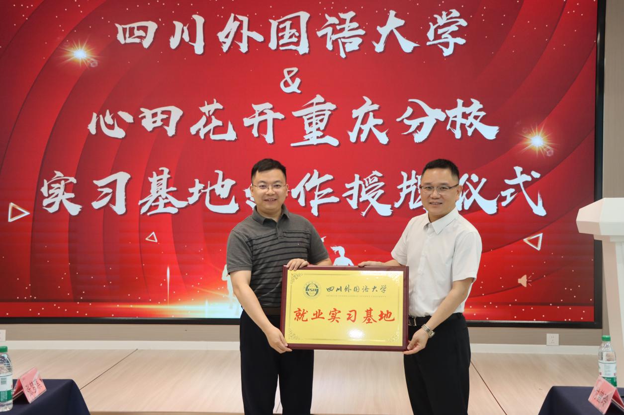 最后,申安桂代表学校向心田花开进行就业实习基地授牌,与会人员共同见证了授牌仪式。
