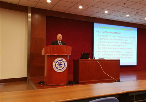 接着,他简要介绍了自己近年来基于复杂适应系统语言观所提出的分析语双层词类范畴化理论模型,同时指出:国内外众多学者之所以在词类范畴化理论研究中容易犯以偏概全、自相矛盾、偷换概念等逻辑错误,在汉语/汉外词典和汉语语料库词类标注实践中之所以经常出现自相矛盾、相互矛盾的现象,关键就在于没有正确把握社群语言系统层面词库中概括词的词类范畴化和言语层面句法中词例的词类范畴化之间所存在的区别和联系。最后,他详细介绍了双层词类范畴化理论模型对现代汉语语料库词性标注的应用启示。
