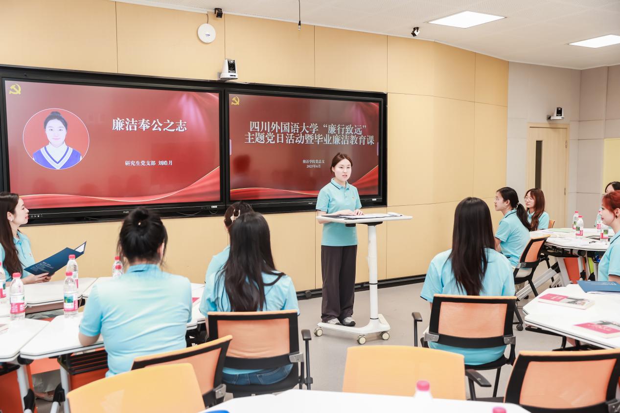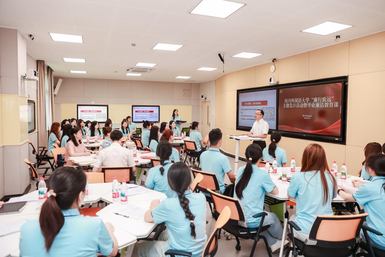 此次主题党日活动暨毕业廉洁教育课构建了“党课引领——榜样示范——情景模拟——誓言践行”的四维教育体系。不仅是对毕业生们的一次廉洁教育和职业教育,更是学院推进廉洁文化建设的重要举措。学院将以此为契机,继续加强廉洁教育力度,为培养更多具有廉洁品质的高素质复合型外语人才贡献力量。