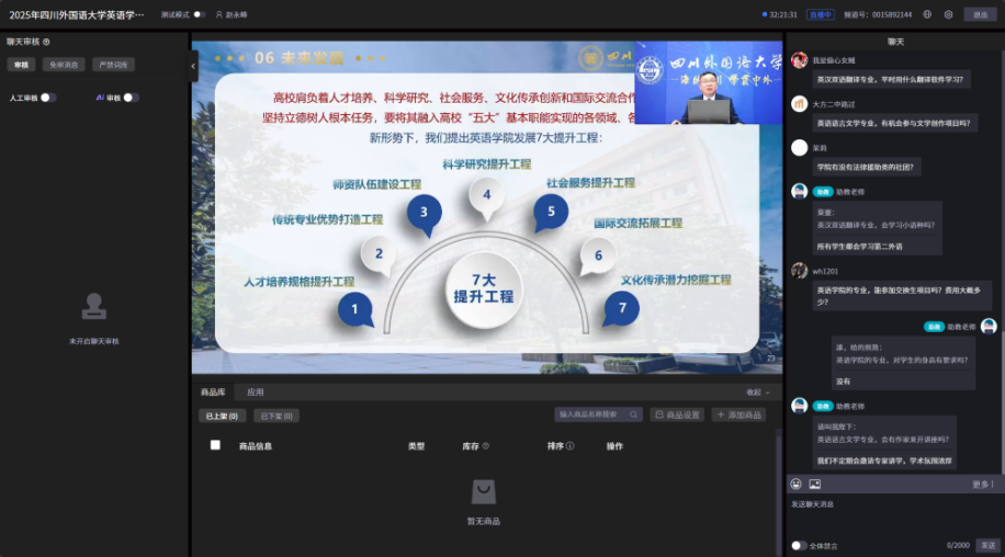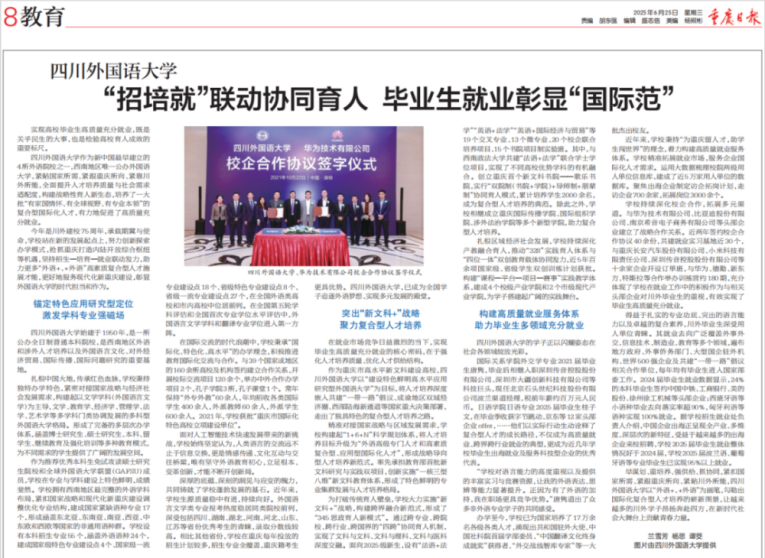 创新在线传播,突出数字赋能。学校积极构建全媒体传播矩阵,实现权威平台与自有渠道的深度融合。在《人民日报》开设川外招生宣传专栏;《重庆日报》对我校“招培就”联动协同育人进行专题报道,并发表采访视频深度解析招生亮点;通过华龙网、中国教育在线、贵州交通广播、高招云及各省份官方专场直播等平台宣传学校,内容同步至学习强国、抖音、小红书、知乎、微信公众号及视频号等主流平台,实现信息的多维触达。特别策划“院长说专业”系列直播,在线解读学院特色与专业优势,互动反响热烈。学校组织专人参与教育部“阳光高考平台”线上咨询周答疑活动及8个省份举办的专场网络招生咨询会。自有新媒体平台持续保持原创日更,确保高质量内容输出,精心打造“川外专业说”“就业先锋”“企话川外”“你好 SISUer”“专业故事”“校友视频”“招宣动态”“高考资讯”“SISU人物”等品牌栏目,全面展现学校学科实力、育人成果与校园文化。学校数智化招生官网接入DeepSeek大模型,实现 7×24 小时不间断咨询服务;官方QQ咨询群保持全天候高效在线答疑。