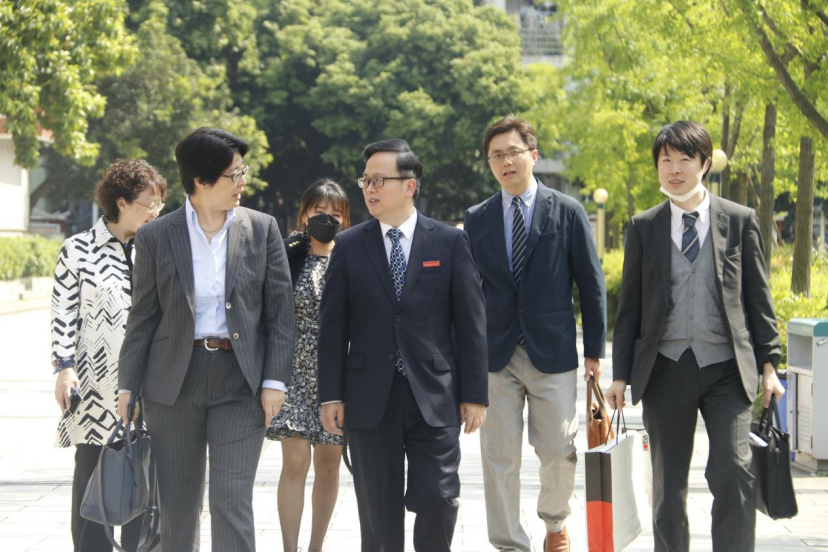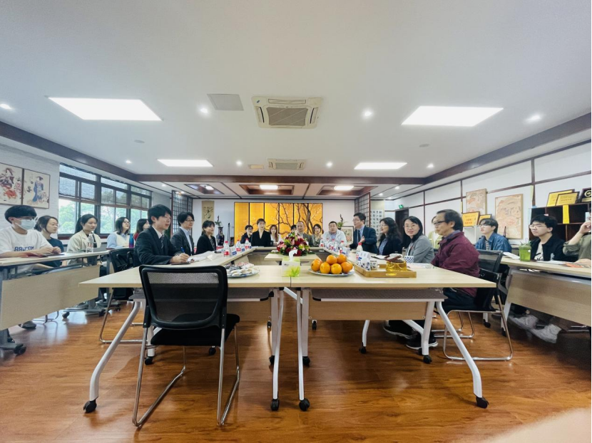 随后,高田真里总领事一行与日语学院中国师生和外教就赴日留学、中日文化及生活适应等内容做互动交流,并前往校史馆参观。