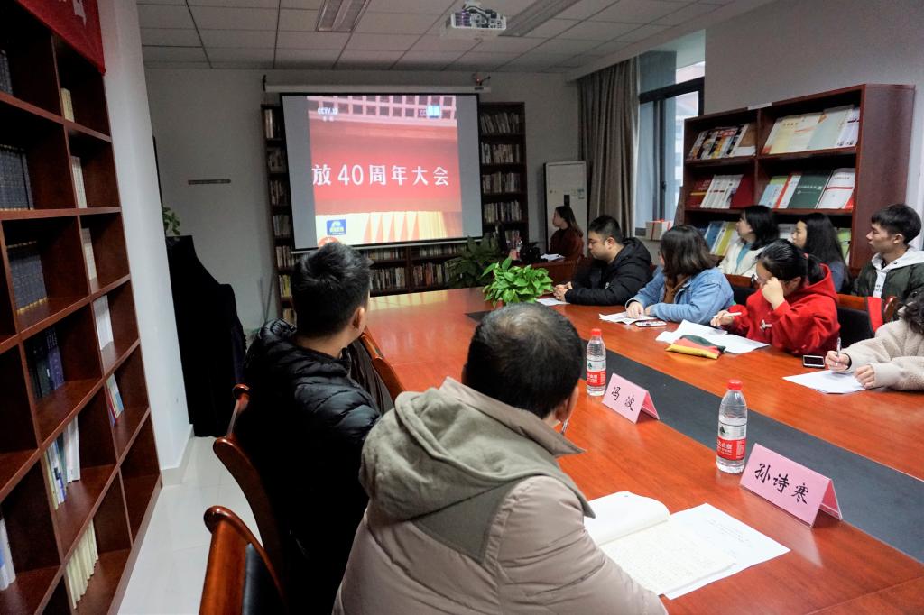 本期学习读书会以“庆祝改革开放40周年”为主题,着重学习了习近平总书记在庆祝改革开放40周年大会上重要讲话内容和《三十讲》中有关改革开放的第二讲、第九讲和第十四讲内容。读书会开始前,党委宣传统战部副部长官晴华代表学校党委宣传部向读书会成员赠送了《习近平新时代中国特色社会主义思想三十讲》书籍,并提出建议和希望。官晴华强调,《三十讲》是广大党员、干部、群众深入学习领会习近平新时代中国特色社会主义思想的重要读物。新时代,大学生要排除错误思想影响,坚持正确方向、确立正确思想,有必要学。党和国家对青年充满期待,寄予厚望,更需要学。
