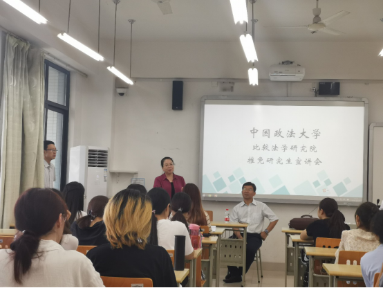 三位专家向相关专业的学生召开了推免研究生宣讲会。解志勇教授向同学们介绍了该推免研究生项目的基本情况,该项目今年是第一次启动,计划以后每年招生;费安玲教授介绍了怎样才算是合格的国际化法治人才,这是国家和社会目前最紧缺的一类人才之一,具有非常大的就业竞争力;潘副教授则结合自身经历,讲述了如何从“小”语种人才成长为国别法研究的法律人才,这条道路充满艰辛,但是鼓励同学们要勇于追求梦想,不被眼前的困难打倒。据了解,除了该推免项目,中国政法大学还有法律硕士的项目,没有保研资格的同学也同样可以通过法律硕士研究生的招生考试进入法硕项目,学习目标语言国家的法律。