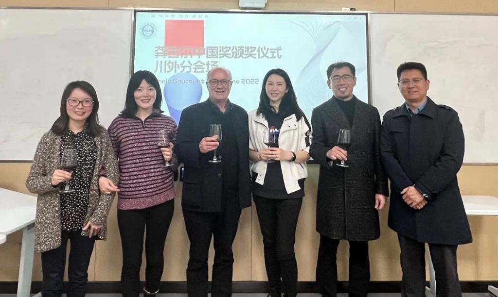 2023年3月28日16:30,“2022龚古尔文学奖中国评选”颁奖典礼在北京法国驻华大使官邸举行。法国驻华大使白玉堂、龚古尔文学奖中国评选主席杜青钢教授出席典礼并分别致辞。我校法语学院硕士生李梓杭作为我校学生评审团代表出席典礼,川外评审团其他师生受邀在川外分会场同步观看现场直播。