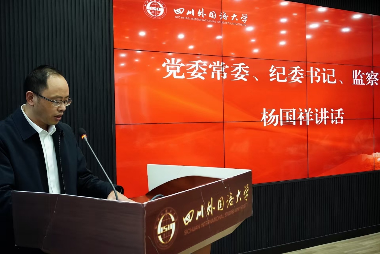 12月5日,四川外国语大学“外语倡廉”品牌启动、 “青春倡廉”宣讲团成立暨歌乐清风学社成立仪式在西区立德楼C117报告厅举行。党委常委、纪委书记、监察专员杨国祥出席仪式并讲话。
