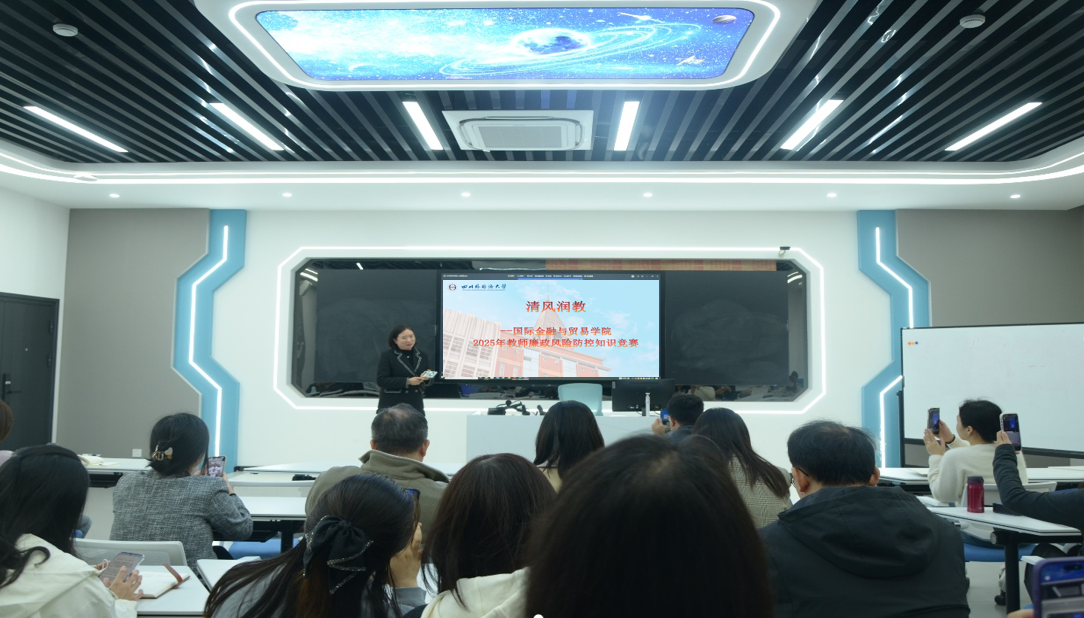 为深入贯彻新时代廉洁文化建设要求,筑牢教师廉洁从教思想防线,推动师德师风建设常态化长效化,2025年11月6日,国际金融与贸易学院在宏文楼505成功举办以 “清风润教” 为主题的教师廉政风险防控知识竞赛。