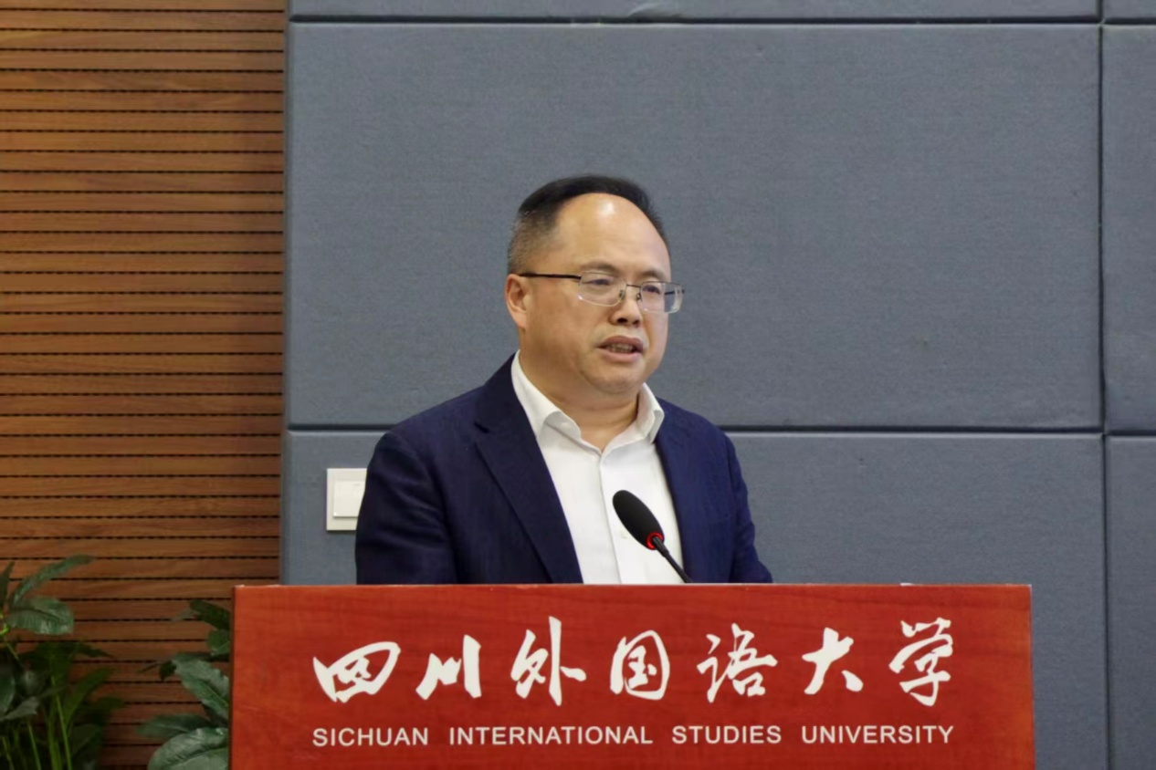 严功军介绍了川外近年来围绕国家与重庆市国际传播能力建设部署,以重庆国际传播学院为抓手,高起点、高标准推进国际传播能力建设的基本情况,在国际传播人才培养、学术研究、实践成果等方面取得的主要成绩,寄语首批112名精通多语种的志愿者:坚守初心使命,做家国情怀的传承者,用志愿行动诠释新时代青年的责任与担当;锤炼专业本领,做国际传播的践行者,用海外受众听得懂、易接受、能共鸣的方式,传播中国发展的生动实践,讲述重庆的独特魅力;弘扬志愿精神,做奉献精神的行动者,以真诚之心架起中外民心相通、文明互鉴的桥梁。