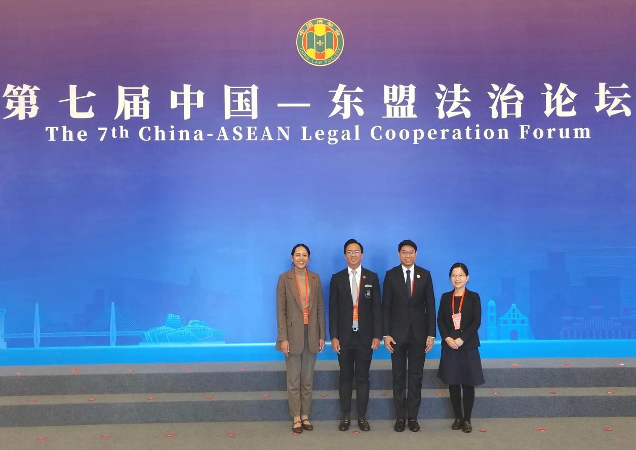 2025年11月21日,第七届中国-东盟法治论坛在重庆隆重开幕。本次论坛以“加强中国-东盟法治合作,共建周边命运共同体”为主题,汇集了来自东盟国家和部分南亚国家立法、司法、政府法律部门高级别官员,法学界、法律实务界及工商界代表,中国法学会和部分省(区、市)法学会代表,东盟高端法治人才培养基地研修班代表等300余名嘉宾代表。在这场高规格的涉外法治盛会中,东方语言文化学院泰语专业师生以专业翻译及志愿者的身份全程参与,为泰国代表团提供精准、高效的语言服务,他们的身影成为论坛中一道亮丽的风景线。