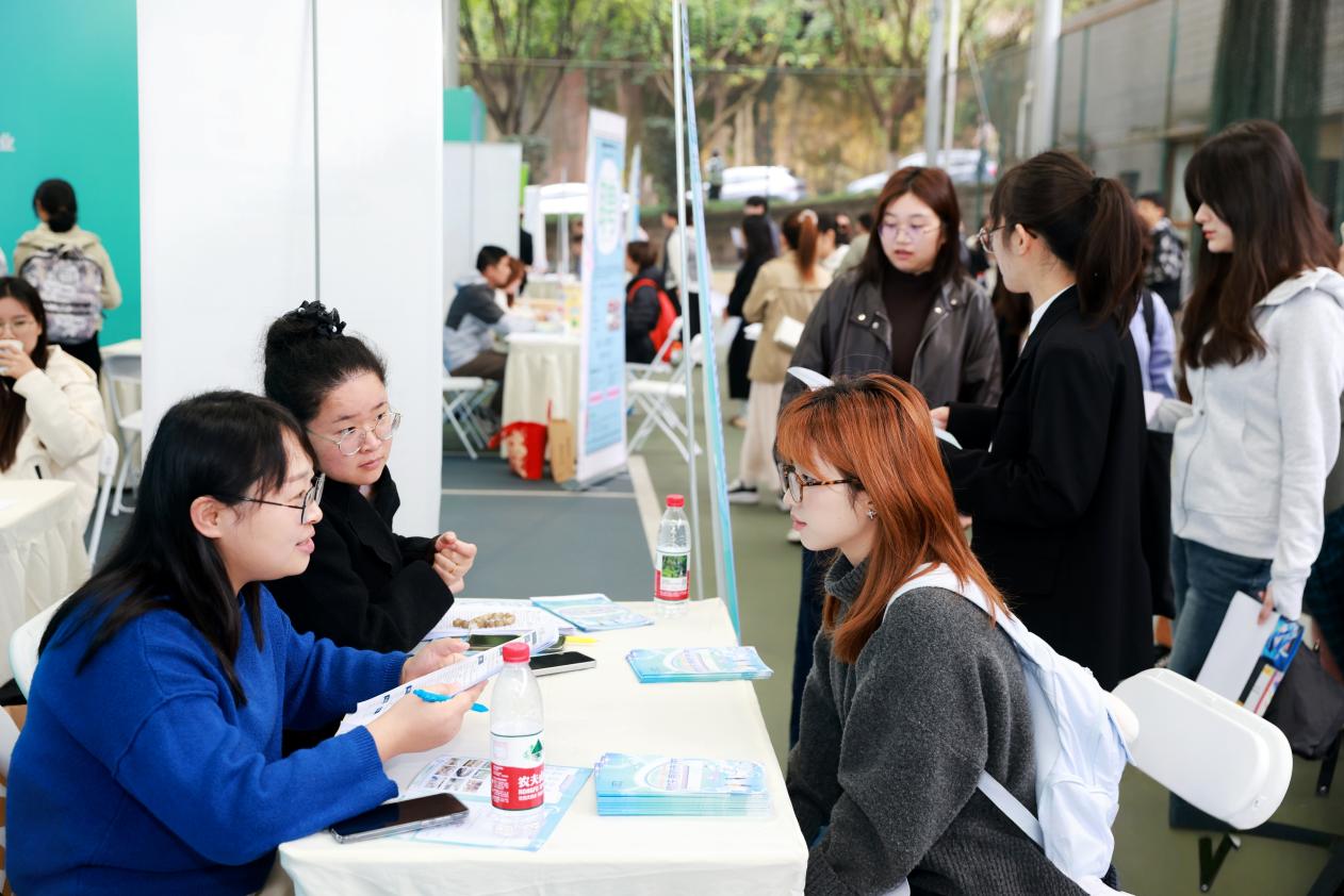 11月14日,由重庆市教育委员会、我校主办的“渝快就•创未来”——重庆市2026届普通高校毕业生外语外贸专场双选会在我校西区风雨操场举行。此次双选会聚焦外语外贸与人文教育领域,参会企业来自全国11个省级行政区,涉及矿业、制造业、教育业、交通运输业等17个行业领域,其中包括中国化学工程第七建设有限公司、中曼石油天然气集团股份有限公司、赛力斯汽车有限公司、重庆巴蜀常春藤学校等一批知名单位。双选会共吸引100余家用人单位参与,提供优质岗位超3000个,1000余名毕业生有序咨询、踊跃投递简历,企业累计接收简历数量超3000份。