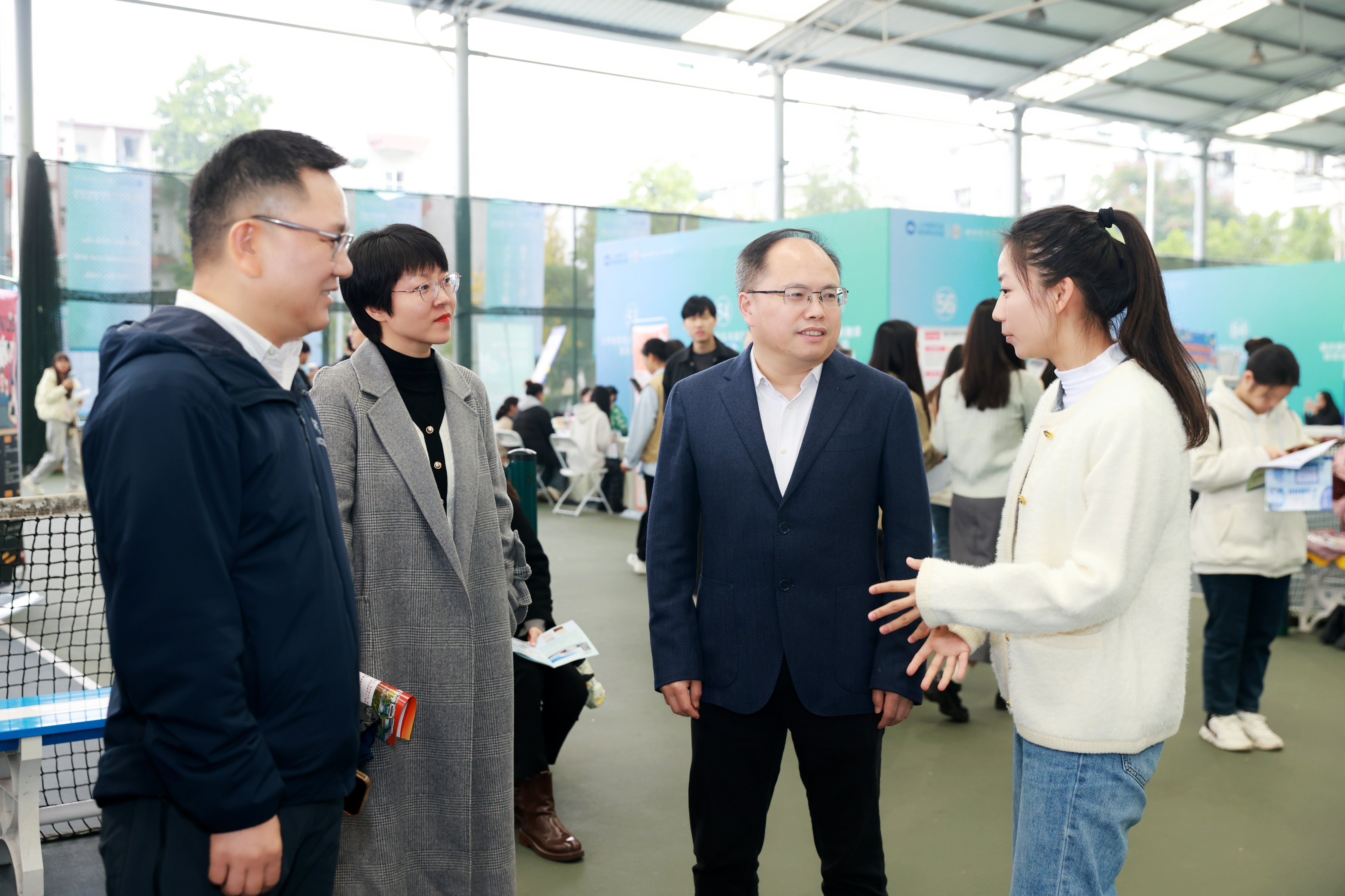 副校长严功军到双选会现场与云南云天化股份有限公司、四川新绿色药业科技发展有限公司、福建世颐集团有限公司等各行业用人单位进行了深入交流。严功军指出,学校围绕服务国家战略与重庆“33618”产业布局,持续深化与行业产业的对接,推动毕业生就业去向更加多元,川外毕业生的综合能力正获得越来越多企业的肯定。本次双选会不仅迎来不少新单位加入,也汇聚了众多长期合作的伙伴,学校期待未来在人才供需、校企协同、产教融合等方面进一步拓展合作空间。他同时寄语毕业生,要准确把握当前就业形势,紧抓秋招扫尾的关键阶段,充分利用学校搭建的双选会、专场宣讲会等校企对接平台,努力实现高质量充分就业。