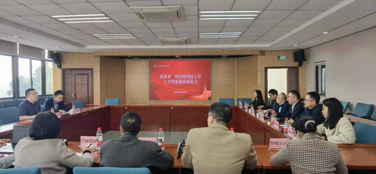 3月26日,商务部人事司负责招聘工作的干部一行来校交流座谈,围绕人才供需对接、复合型人才培养等核心议题开展座谈。学校副校长严功军出席座谈会。