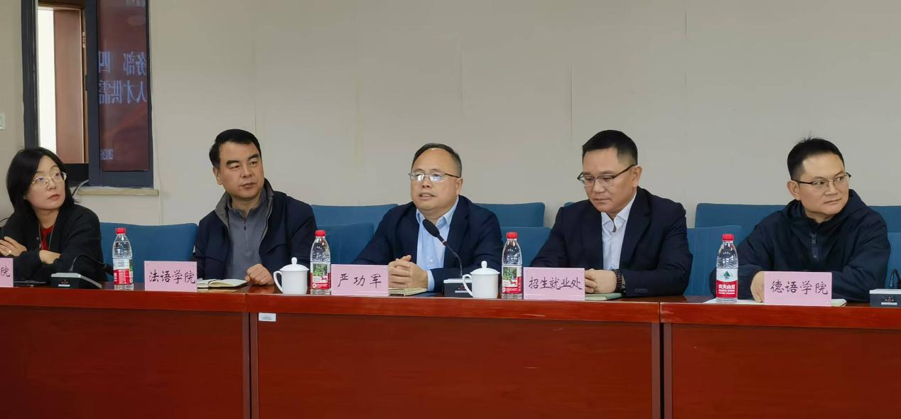 座谈会上,商务部人事司干部系统介绍了商务部的职能定位与人才需求。他阐释了商务部的工作特点,指出当前我国对外开放进入新阶段,商务部作为对外经贸核心部门,迫切需要兼具家国情怀、专业能力和国际视野的复合型人才,尤其是精通外语、熟悉国际经贸规则的人才。随后,他简要介绍了商务部人才队伍建设及今年事业单位招聘的核心需求、人才标准,希望与川外建立常态化合作机制,在人才供需对接、实习实践方面加强协作,实现校部优势互补,共同推动商务事业高质量发展、助力国家对外开放大局。